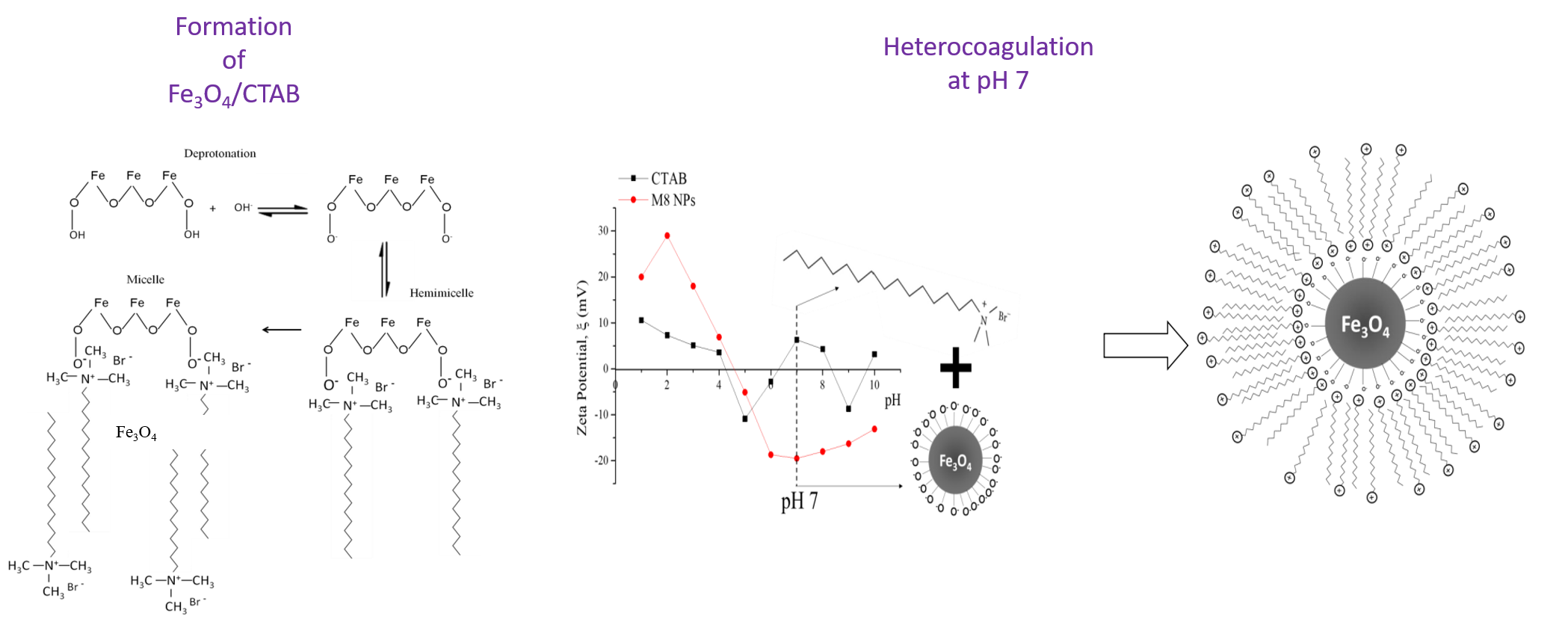 heterocoagulation method was used to self-assemble CTAB on Fe3O4.