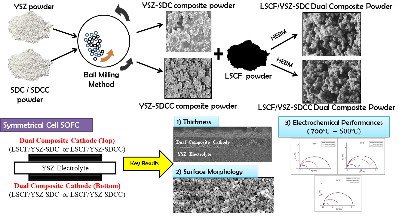 (SDCC) dibentangkan. Komposisi yang berbeza bagi katod komposit dwi telah