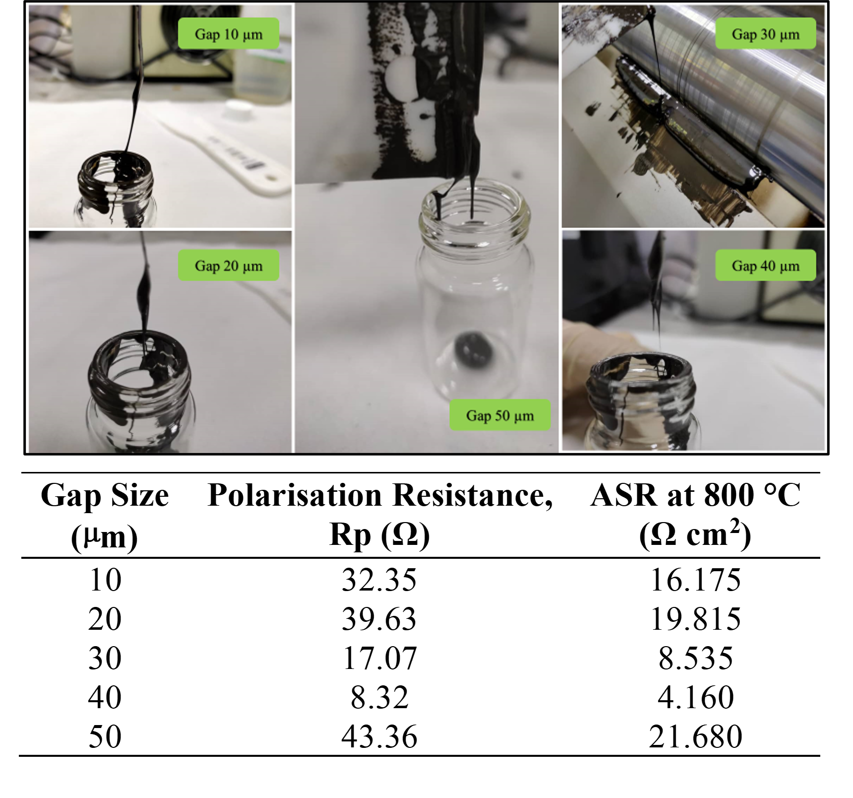 that the best gap size is at 40 µm with the lowest polarisation resistance (Rp),