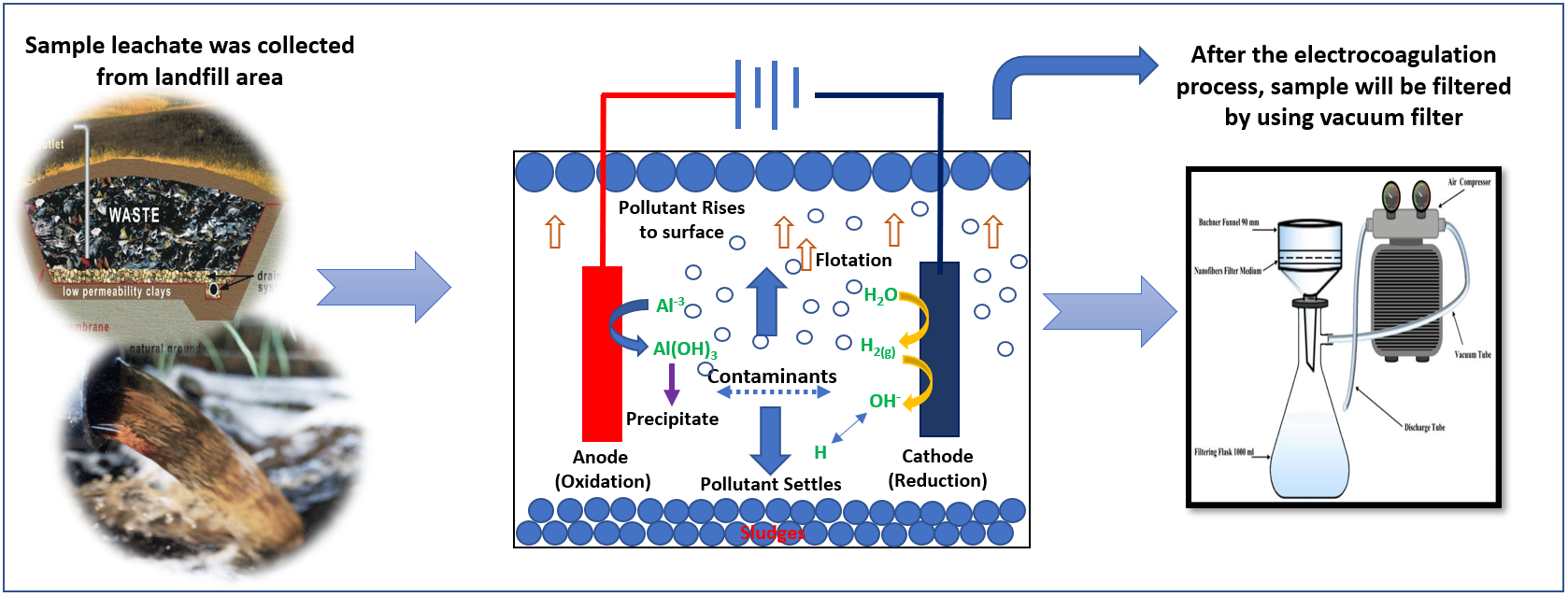 Kata kunci: elektrokoagulasi, larut lesap tapak pelupusan, permintaan oksigen kimia,