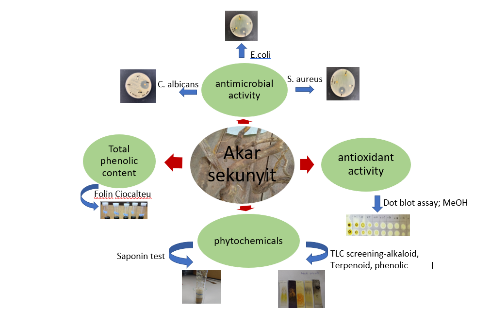 Kata kunci: Coscinium fenestratum, antibakteria, antikulat, akar sekunyit, antioksida