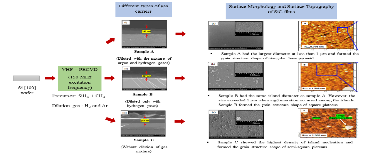(Kajian Morfologi Filem Nipis Silikon Karbida Yang Dimendapkan oleh Frekuensi Sangat Tinggi - Pemendapan Wap Kimia Dipertingkatkan Plasma dengan Melaraskan Pencairan Gas) Zainur Atika Ibrahim, Muhammad Firdaus Omar, Abd Khamim Ismail