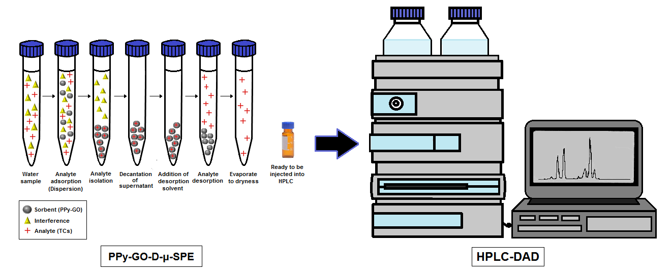 4. DISPERSIVE MICRO-SOLID-PHASE EXTRACTION (D-µ-SPE) WITH POLYPYRROLE-GRAPHENE OXIDE (PPY-GO) NANOCOMPOSITE SORBENT FOR THE DETERMINATION OF TETRACYCLINE ANTIBIOTICS IN WATER SAMPLES (Pengekstrakan Fasa-Pepejal-Mikro Secara Serakan (D-µ-SPE) menggunakan Polipirol-Grafin