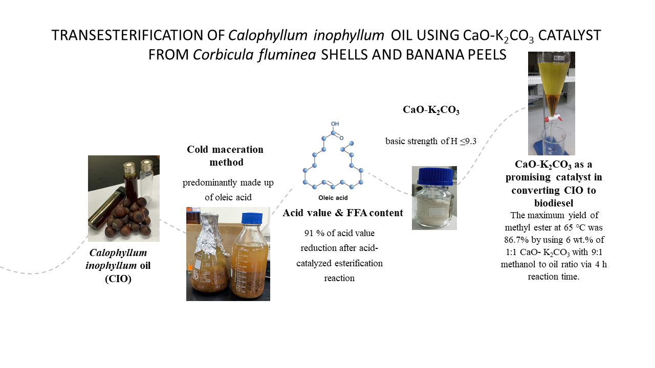 inophyllum (CIO) dan pemangkin kalsium oksida-potasium