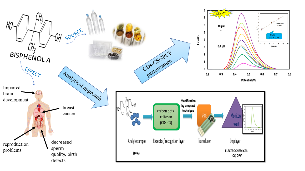 Bisphenol A, carbon dots, chitosan, electrochemical sensor, environmental