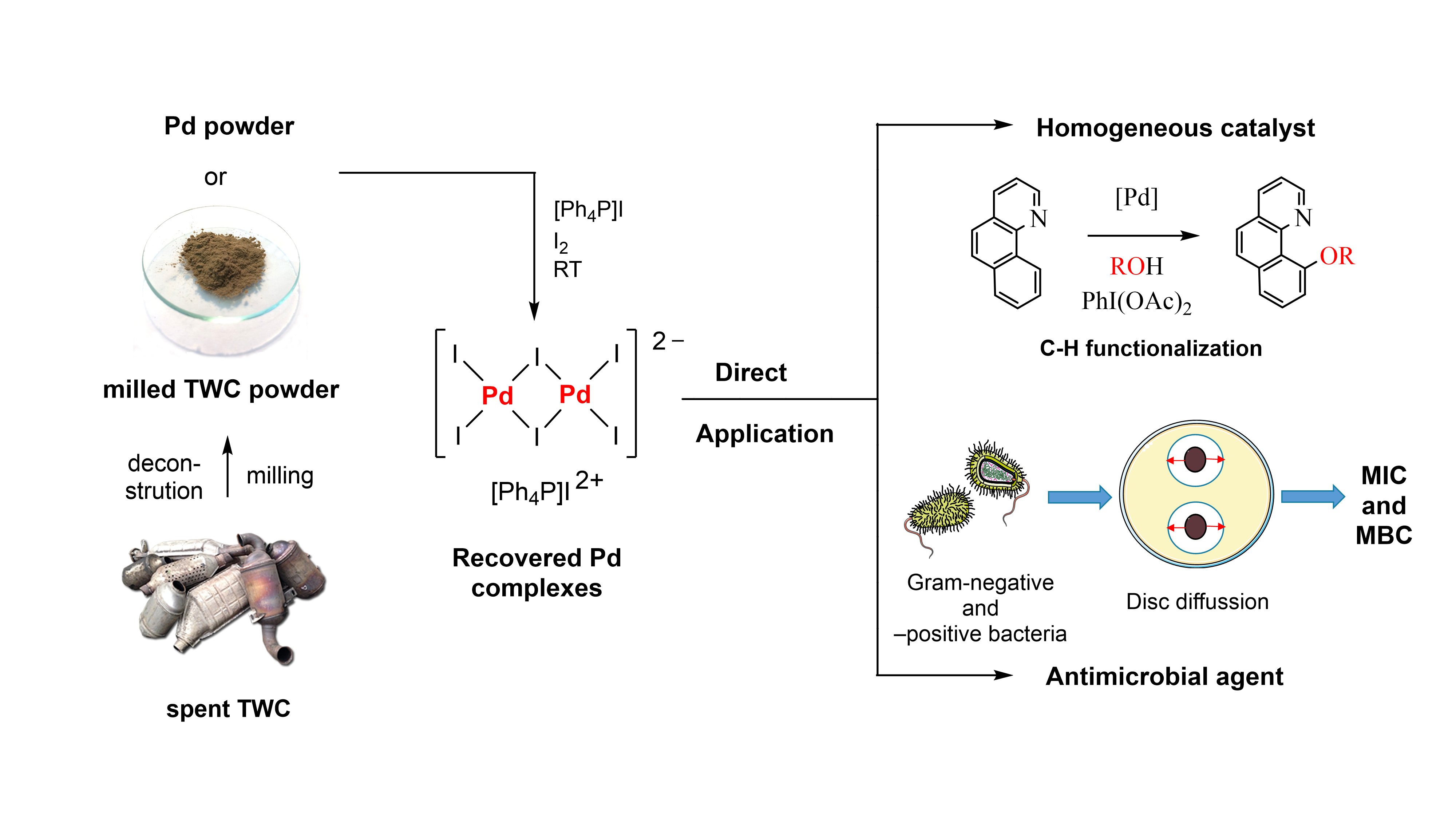 16. RECOVERED PALLADIUM COMPLEXES AS A POTENTIAL HOMOGENEOUS CATALYST FOR C-H FUNCTIONALIZATION AND ANTIBACTERIAL AGENT