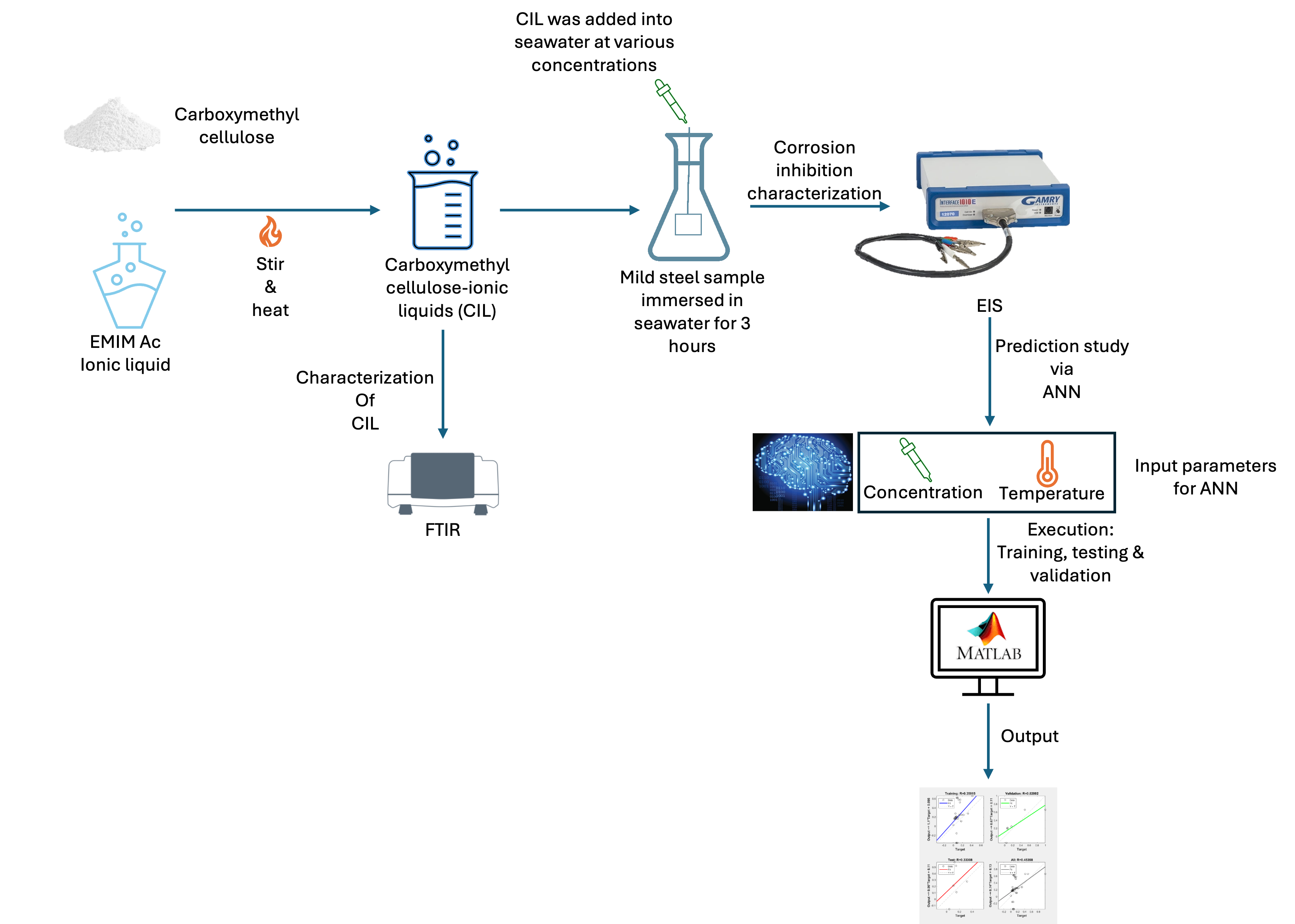 3. CORROSION INHIBITION STUDY OF CARBOXYMETHYL CELLULOSE-IONIC LIQUID VIA ELECTROCHEMICAL AND MACHINE LEARNING TECHNIQUE |