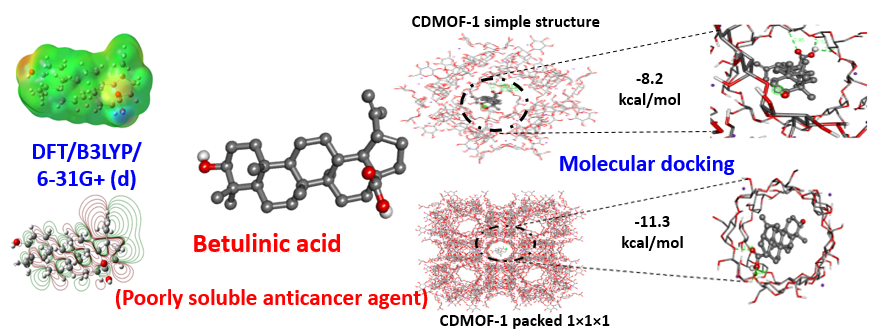 6. INVESTIGATIONS ON THE INCLUSION OF BETULINIC ACID INTO CDMOF-1 PERFORMED BY QUANTUM MECHANICS CALCULATIONS AND MOLECULAR DOCKING SIMULATION |